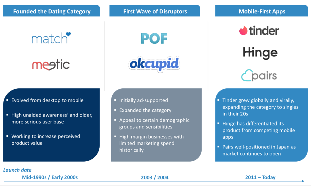 Bumble上市,不得不提到“屋子里的大象” - 旗下拥有Tinder、Match.com、Hinge、OkCupid等多款交友约会软件的Match Group,Match Group在2015年上市,上市时估值为29亿美元。