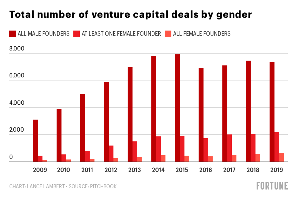 而PitchBook的数据更是显示,疫情让女性创立的公司的估值减少了31%,和其他公司的均值18% 比起来幅度更大。2020年前三季度的资本总额中,分给女性创始公司的只有13%,和2019年的15.5%相比也有所减少。