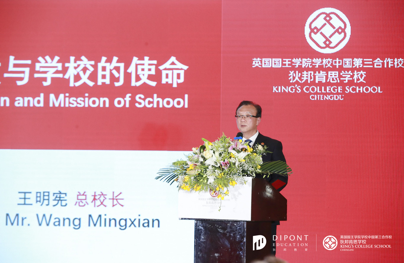 成都市教育局一级调研员万斌在致辞中说,重视教育就会赢得未来,成都是中国首个中外人文交流教育实验区,开放的成都,也就需要更加开放的教育,即将开学的成都狄邦肯思学校,对于创建以学生为中心的学习体验和教育平台,推进中外教育文化交流、基础教育改革,着力培养面向未来的国际化人才具有积极意义,对扩大全市优质教育资源总量具有深远影响。成都市教育局和新都区教育局将共同加强对学校办学的支持和指导,并表达了将狄邦肯思学校建成面向未来、办学成效显著、国内外富有影响力的新锐学校的期待。