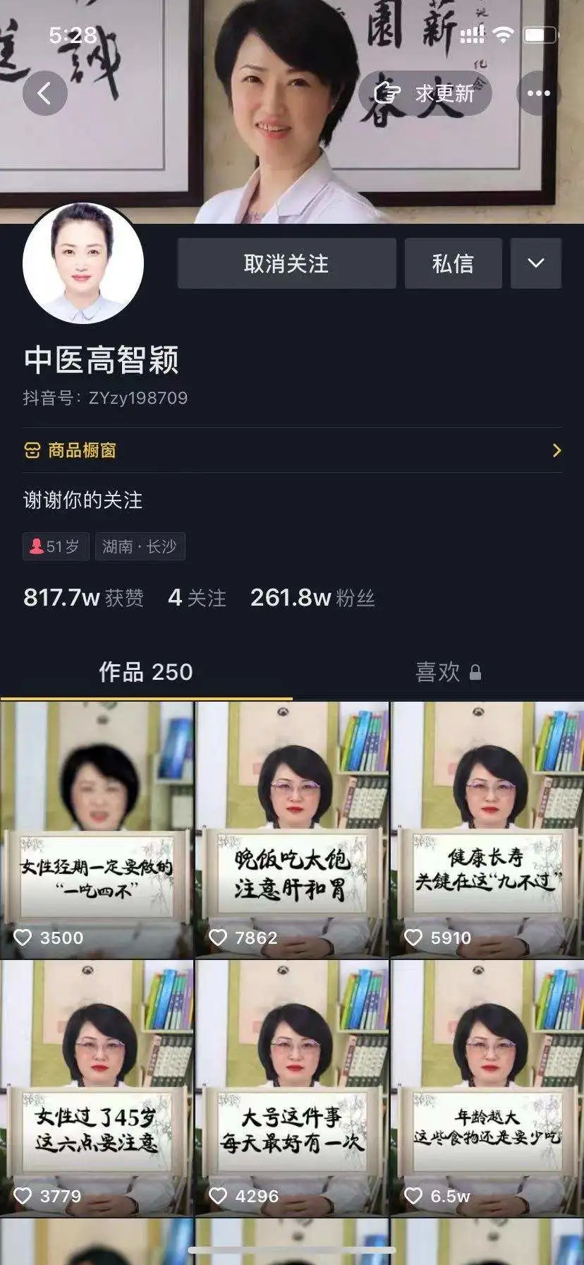 开菠萝财经在抖音上搜索“医生”关键词,发现没有官方认证的医生博主大有人在,账号一样做得风生水起。比如抖音账号“中医高智颖”,简介中没有注明医院、科室和真实身份,只有一句“谢谢你的关注”,却拥有260多万粉丝,获赞数已经近千万。