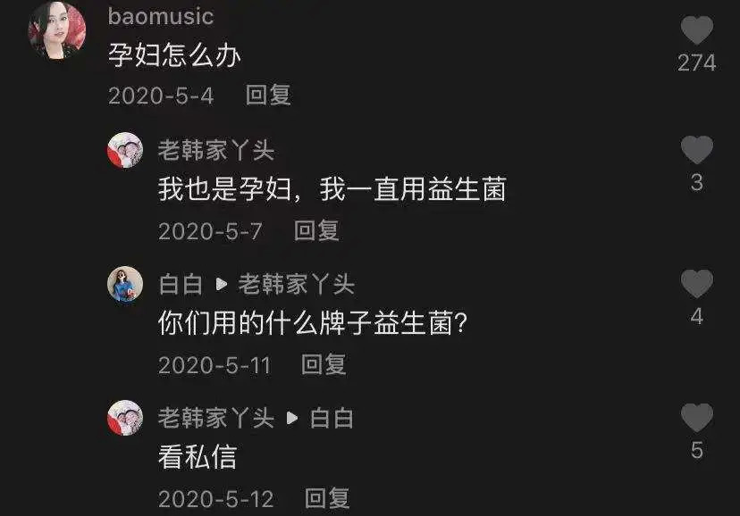 在抖音账号“妇产科牛医生”的视频评论区,有网友问:“孕妇怎么办”,骗子接话称自己也是孕妇,一直用益生菌,随即对那些已经上钩要益生菌牌子的用户进行私信,开始下一步的1V1套路。
