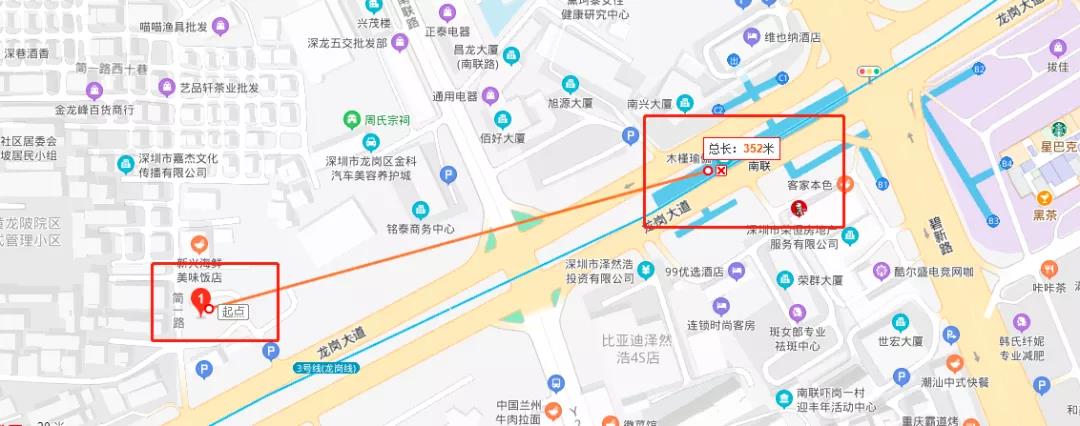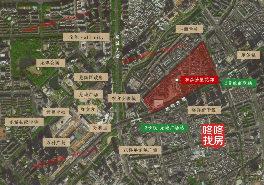 和昌拾里花都位于龙岗大道与简一路的交汇处,与3号线南联站直线距离不到400米。