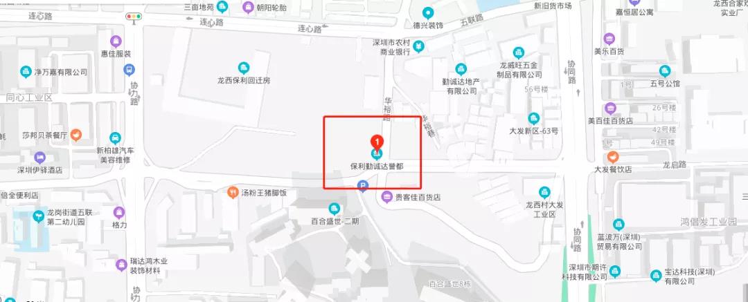项目位于华裕路西侧,夹在协同路与协力路之间,与百合盛世毗邻,周边被工业区包围。距离最近的地铁站为3号线的龙城广场站,两者之间直线距离约3.5公里,出行只能依靠公交或自驾。