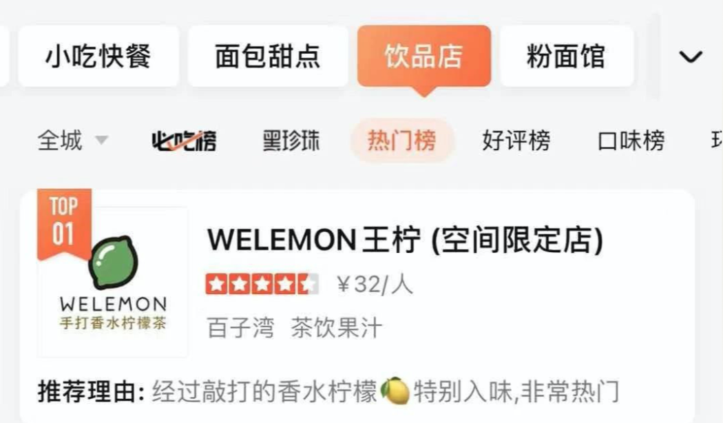 这款产品来自北京的一家手打柠檬茶店,开业不久荣登大众点评北京饮品店热门榜第1名。
