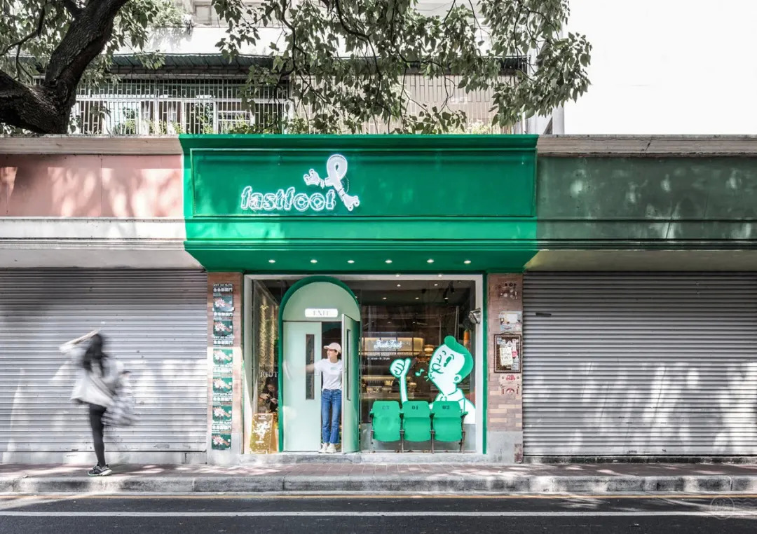 在广州,有一家名为急急脚咖啡公司的“网绿咖啡馆”,这家店无论门头还是空间内部,都用了大胆亮眼的绿色,同时搭配创意细节,打造新奇感,用时尚又复古的风格,吸引年轻消费者前去拍照打卡。