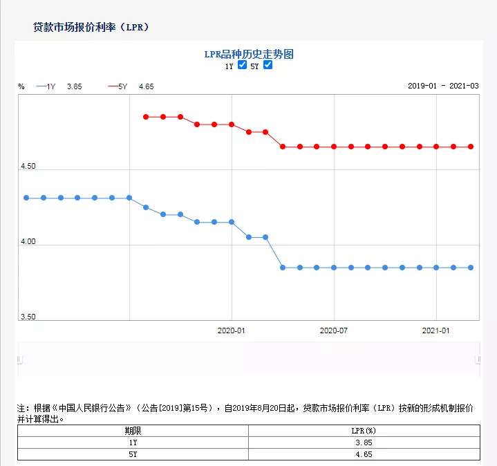 1年期利率为3.85%,5年期利率为4.65%,与上月持平。自2020年4月以来,LPR数据再没有出现浮动。