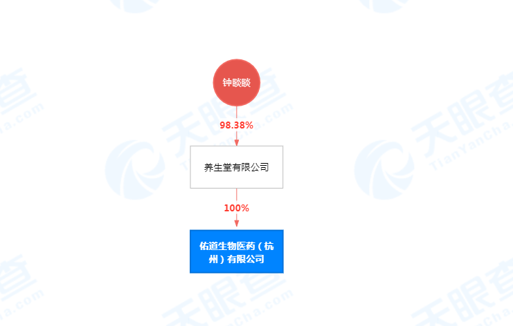 佑道生物医药(杭州)有限公司成立于2019年12月,注册资本为1亿人民币,经营范围含生物制品的研发;医药技术、生物科技、医疗技术的技术开发、技术咨询、技术服务;医疗器械的检测技术服务;批发、零售:第一类医疗器械、化工原材料、生物制品等。股东信息显示,该公司由养生堂有限公司全资持股,疑似实际控制人为钟睒睒。