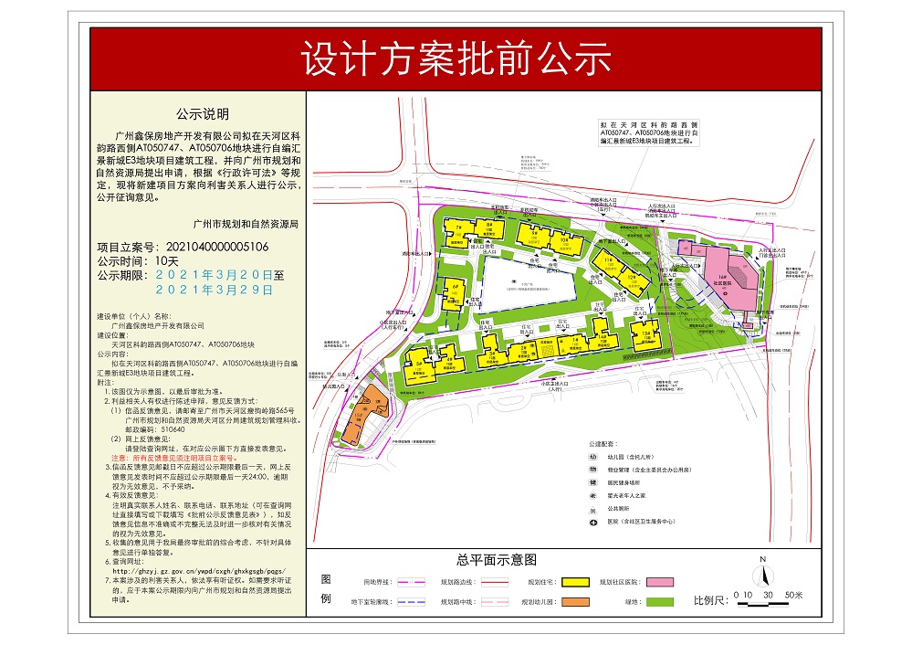 3月20日,广州规划和自然资源局发布了天河汇景新城E3地块项目的设计方案批前公示。