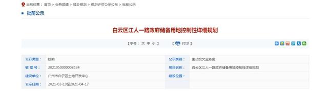 3月19日,广州市规划和自然资源局发布《白云区江人一路政府储备用地控制性详细规划》,拟对AB0403、AB0704规划管理单元控制性详细规划进行调整。