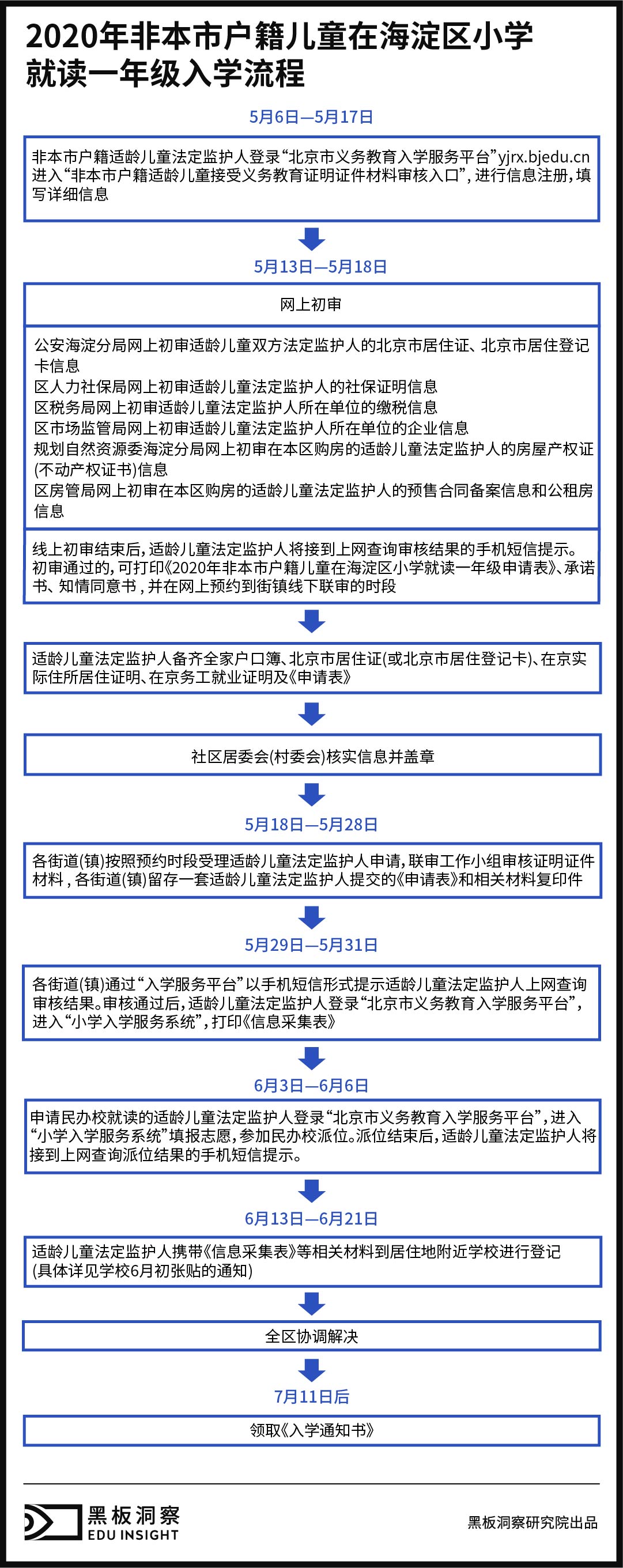 然而对于随迁子女来说,准备好“四证”,才只是材料审核的其中一步。通过网上初审后,还需打印《2020年非本市户籍儿童在海淀区小学就读一年级申请表》、承诺书、 知情同意书 , 并在网上预约到街镇线下联审。全部审核通过后,才能进入信息采集流程,耗时近1个月。如果网上初审不予通过,还需在规定时间内重新准备相关材料。同时也需要如工作单位、房屋屋主、居委会等各方面的支持。