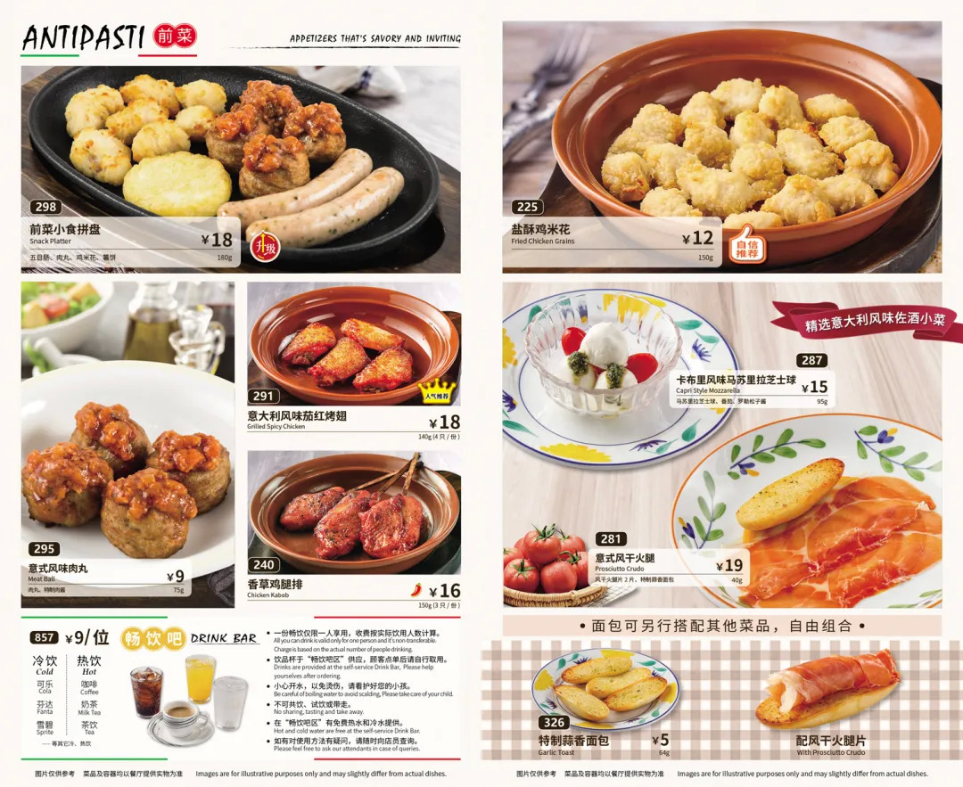 这是一家能让人随便点的餐厅,十几块一份披萨,10-20元一份意面,前菜只要7元,饮料更是可以无限续杯,产品丰富,吃饱喝足人均才不过35元。