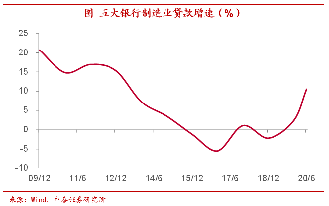 制造业企业融资显著改善。从融资端来看,根据银保监会披露的数据,去年全年制造业贷款新增2.2万亿元,超过前五年的总和。工农中建交五大银行在2020年上半年制造业贷款增速也超过10%,制造业企业融资改善令其“弹药充足”。