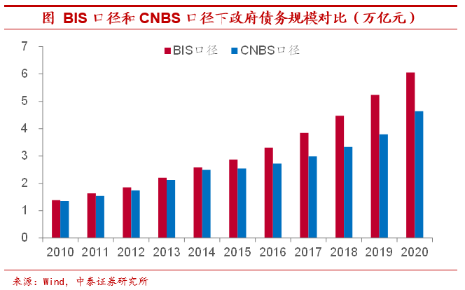 “降杠杆”剑指隐性债务。政府杠杆率的降低意味着今年内政府债务的增速要小于经济的名义增长速度。对于经济的名义增速,财政部在准备预算草案报告的时候会对年内GDP的规模有个大体估计,根据预算报告及可能存在的估计偏差,我们预计,年内名义GDP增速上限约在11%-12%。对于政府债务的规模,CNBS数据显示2020年底政府债务余额约为46-47万亿元,和今年财政预算报告以及社融中的数据大体相当。而根据今年财政预算的安排,预算内财政赤字规模为3.57万亿元,地方政府新增专项债3.65万亿元,两者合计达7.22万亿元,则今年的政府债务增速将达到15.5%,远超我们预计的名义GDP增速上限。即便考虑到每年政府债务的净融资额可能会略小于年初设定的目标,降低政府杠杆率的要求也很难实现。我们发现,BIS口径下的政府杠杆率和CNBS口径下的数据存在着很大的差异,两者统计的政府债务规模相差近15万亿,主要源于BIS口径数据含有对地方政府融资平台债务的估计。从这个角度出发,这次政府降杠杆或剑指地方隐性债务,这样即便在财政预算目标设定的情况下,包含隐性债务部分的政府杠杆率仍可能实现下滑。