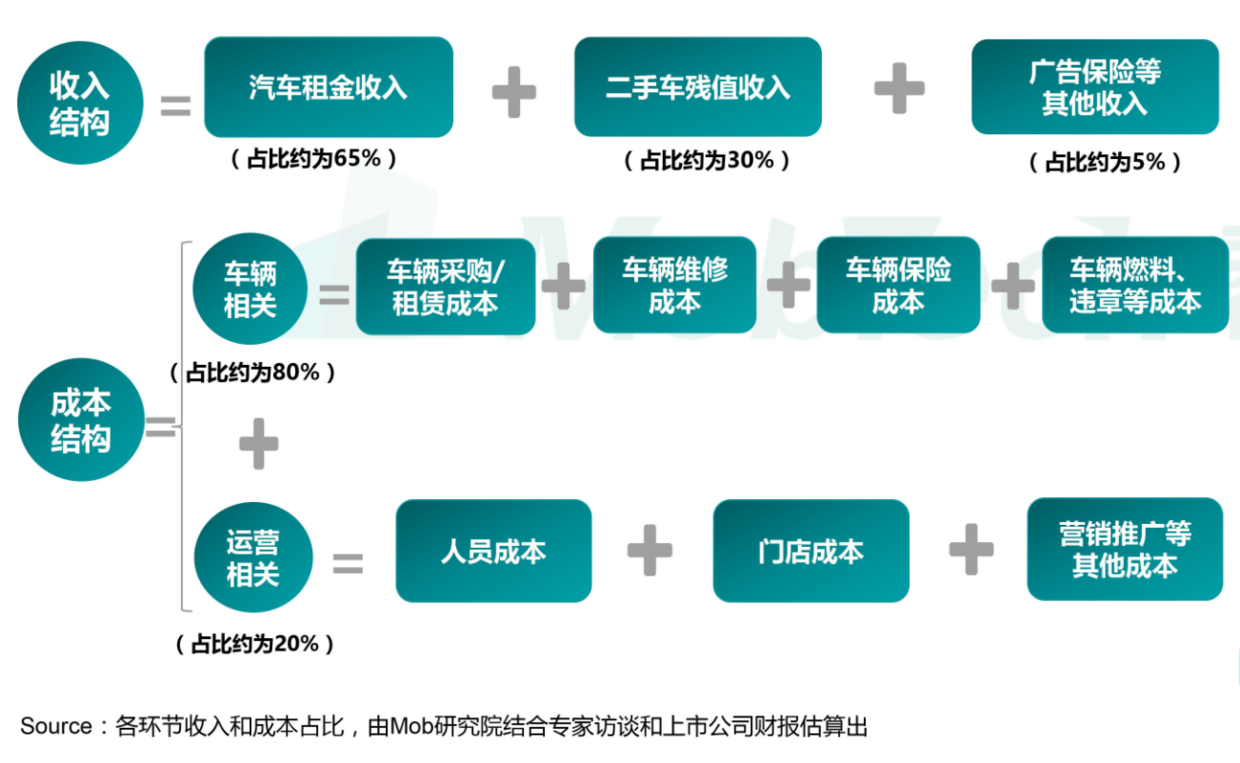 这就引出了共享汽车“倒闭潮”的症结所在——盈利难。根据Mob研究院发布的《2020中国互联网租车行业报告》,互联网租车平台营收来源主要有三项,租金、二手车残值以及广告,前两项占到了95%。