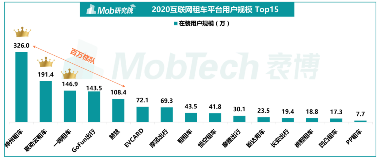 Mob研究院统计的数据显示,2020年上半年行业排名前五的平台,用户规模均已超过百万。例如,联动云租车月度活跃用户规模已突破200万量级,较2019年同期增长95%,且近一年月均留存率接近30%,上升势头迅猛,这让我们对该市场依旧保有期待。