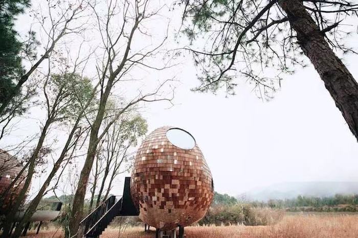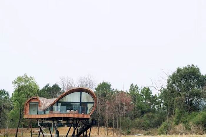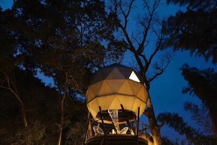 星穹屋和鸟巢屋都位于浙江省余姚市中村景点附近。星穹屋建造在了一棵树上,仿佛是自然界里的一颗小星球。住进这座奇屋里可以夜观春日星空,感受繁星流转,人们可以变身成为“宇航员”,在太空知识的互动中一起筹备一场“星球岛计划”。