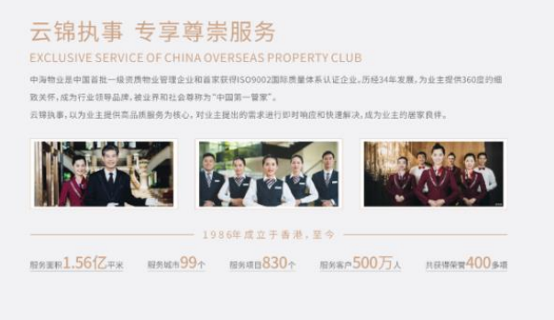 而说起服务和运营的佼佼者,就必须提到被业界尊称为“中国第一管家”的中海物业——项目携“云锦执事”而来,旨在打破物业管理原有服务格局,借鉴英式执事管理理念,提供更好的服务,全面革新城东人居体验。