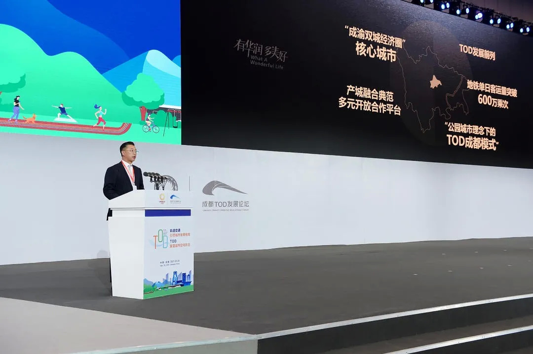 TOD在中国达到了一个新的高峰,对成都来说,成都的轨道交通发展不仅进入了中国的第一方阵,更是已经走进了全球第一方阵。在成都做TOD非常有基础。TOD项目和公园城市建设互为支撑,TOD发展是建设践行新发展理念的公园城市示范区的结构性支撑,公园城市建设是TOD发展的支撑体系,二者完美结合,才能为市民提供一个家园生活体系的城市环境。