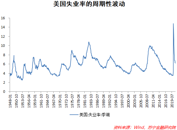 关于第4点,我们判断在现有框架下,美联储比之前更加看重就业目标。当前美国就业情况远不如疫情前的情况。而鲍威尔的目标是“就业最大化”。回顾历史,美国失业率从波峰到波谷的恢复平均需要4.5年左右,一个就业的小周期回升也需要3年左右。因此美国就业情况恢复到疫情之前的水平,可能至少要到2023年7月份。