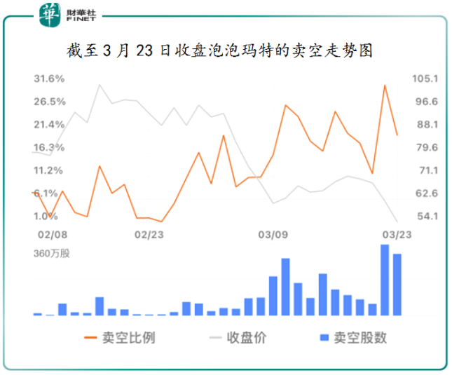 这还没完。随着空头在泡泡玛特尝到甜头,做空比率再创新高,于3月22日做空比率升至31.4%。截至3月23日收盘,泡泡玛特做空比率为20.33%。做空平均成本在65.15港元,做空平均盈利16.81%。