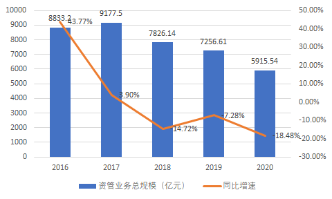 资管新规对公司资管规模的缩水无疑影响深重,2018年至2020年,资管规模分别同比下滑14.72%、7.27%、18.48%,2020年是这三年中下滑速度最为快的。