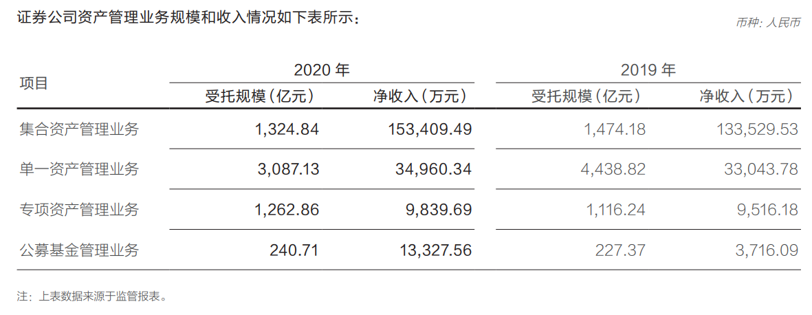 华泰证券在年报中表示,在资产管理行业统一监管的大背景下,通道业务占比较高的资产管理机构面临较大业务压力,证券公司亟待向主动管理转型,打造差异化核心竞争力。