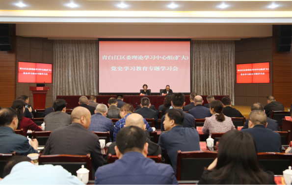 举办青白江区局级领导干部十九届五中全会精神暨党史教育读书班,交流研讨、实地考察、分组讨论,缅怀革命先烈、谋划区域发展、推进民生福祉。邀请首都师范大学教授郭海燕作党史教育专题辅导讲座,回顾百年党史、解读精神谱系、坚定理想信念,增强党的意识和党员意识。深挖本土党史上的革命先烈、先进典型及精神谱系,编撰《青白江区百年党史纪实片》《中国共产党青白江100年历史大事记》,教育引导党员干部传承红色基因、发扬光荣传统。依托亚蓉欧国家(商品)馆、欧洲产业城、城厢天府文化古镇等优势资源,打造“一带一路”主题展等“一展两馆一基地”“四史”教育基地,深化现场考察、场景体验、案例教学,把学习教育引向深入。