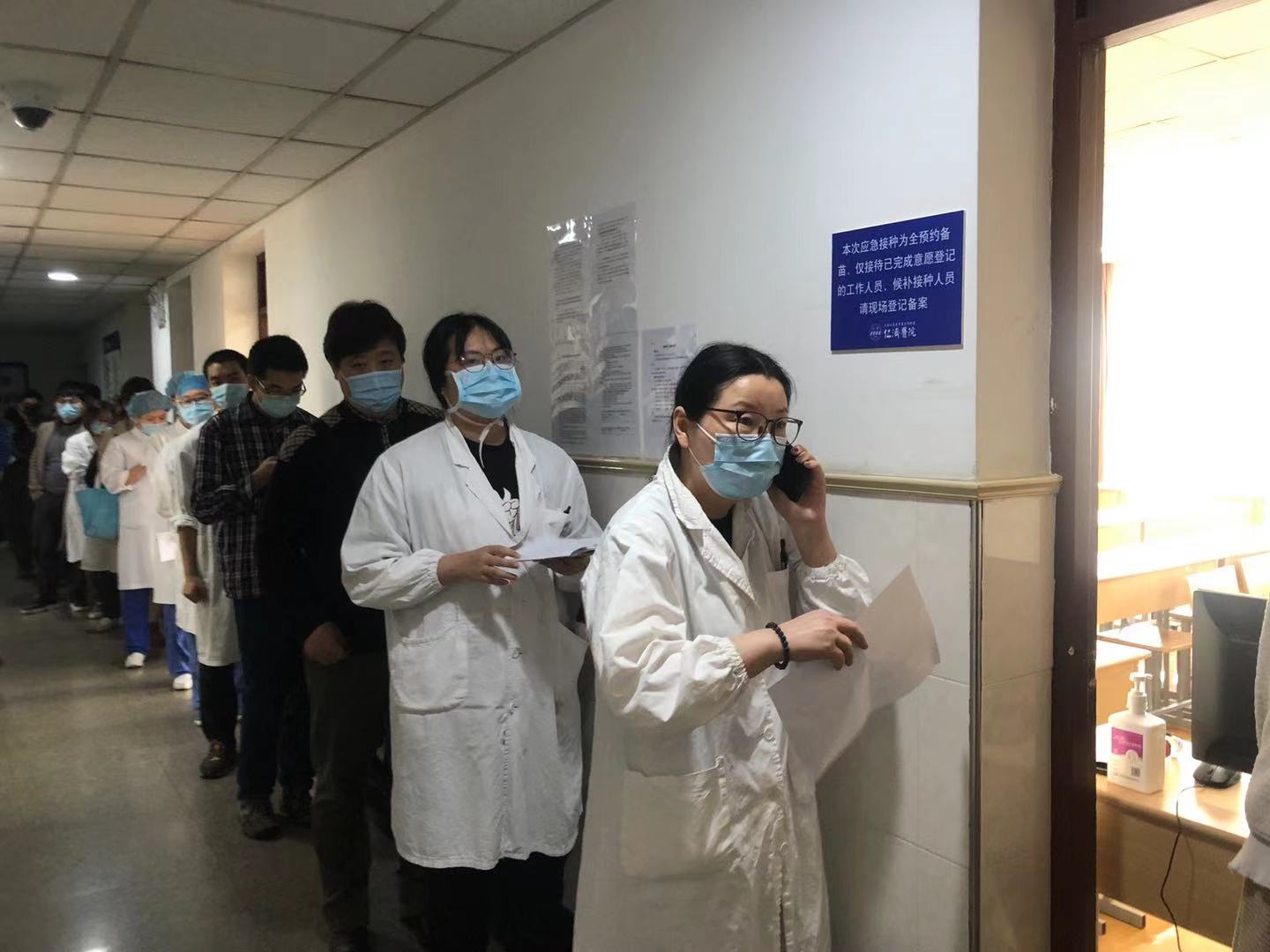 目前,上海市各大医院都在加快为医护人员接种新冠疫苗。