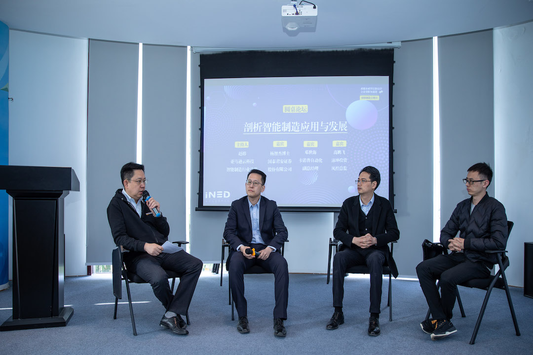 首场圆桌论坛由亚马逊云科技智能制造行业总监赵榕主持,国泰君安证券杨智杰博士、卡诺普自动化控制技术有限公司副总经理邓世海、沛坤投资风控总监高鹏飞共同参与。