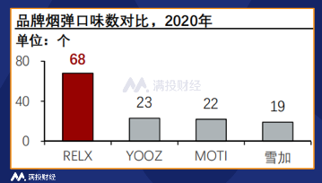 从烟弹口感来看,Yooz的烟弹口味与其他品牌的重复率较低,推出经典口味“黑加仑草莓”“冰葡萄酒”和“百香果”的口味,和同类在口味上形成了差异化竞争。