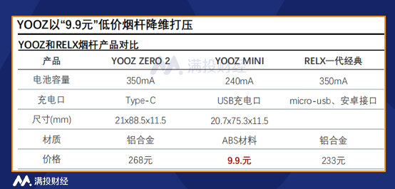 Yooz Zero 一代的产品价格为199元,二代产品烟杆价格为268元,Yooz MINI为低价烟杆,其通过减少电池容量、使用较便宜的材料、采用技术含量较低的USB充电口和制作较小的尺寸从而降低成本,销售产品。