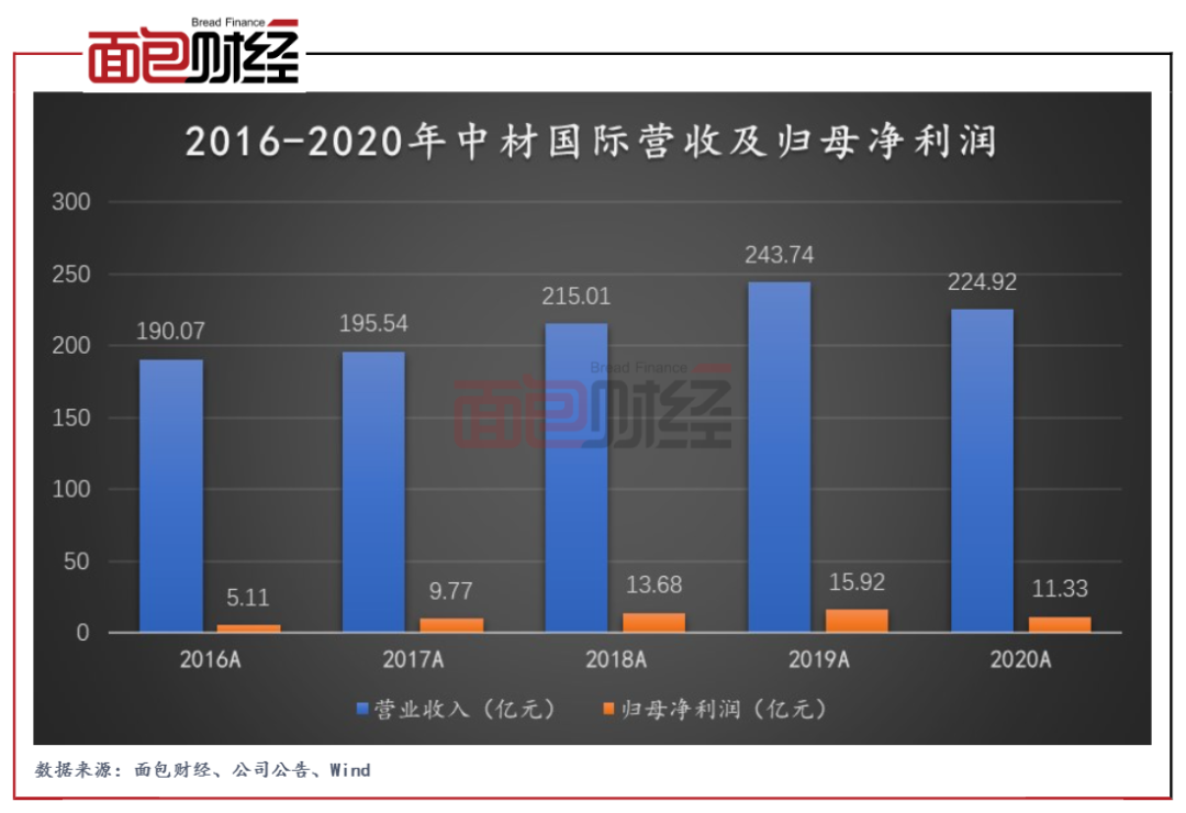 中材国际于2021年3月20日发布2020年年度报告。报告期内,公司实现营业收入224.92亿元,同比下降7.72%;实现归母净利润11.33亿元,同比下降28.81%;实现扣非后归母净利润8.57亿元,同比下降42.38%。