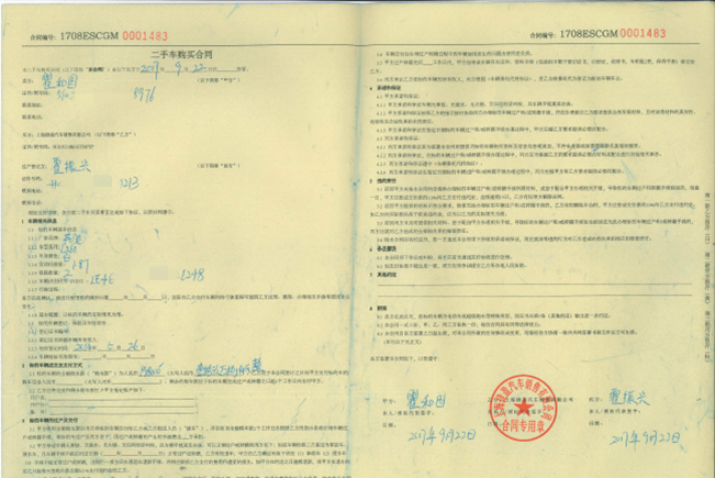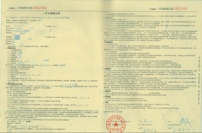 “他们是邮寄给我们的空白合同,一式三联还是四联。我们卖了一辆车之后,给客户签的是我们公司恒鑫二手车的合同。完了之后,再由我们的销售人员或者财务人员,照抄到他们的(空白)销售合同上面。”