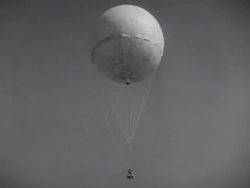 1945年2月1日,有人在加州北部Hayfork附近的三一国家森林(Trinity National Forest)上空发现了一只气球。气球落在一条路旁的一棵死杉树上,引起多人围观。不一会儿,就在太阳刚刚落下的时候,气球爆炸了,所幸没有人受伤。