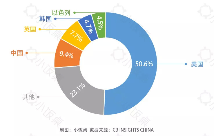 从 AI 制药领域融资交易率来看,中国已经成为了除美国外最大的新兴市场。近 5 年来在 AI 制药领域有 50.6% 的融资交易发生在美国,中国则占据9.4% 。