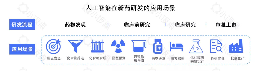 细分下来,AI等计算可应用在靶点发现,化合物筛选、化合物合成、晶型预测、制剂研发等多个环节。
