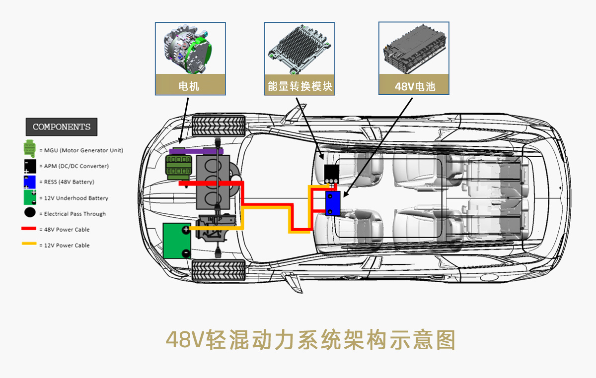随着时代进步,传统12V电气化驱动——即曾经最主流的车内供电系统,已经无法供给,奥迪、宝马、戴姆勒、波尔舍、大众于2011年共同推出48V轻混系统, 该系统建立了第三种车载电源系统,解决了自动驾驶、舒适配置与传统电气的电能供给矛盾。