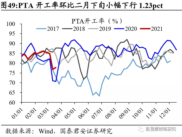 化工:供需紧、高成本支撑钛白粉涨价,PTA加工费低位下装置检修去库。3月23日钛白粉现货价格18650元/吨,环比半月前上涨1.91%。供需平衡紧张,供给端生产节奏平稳,需求端国内即将进入备货采购旺季,且尚有出口欠单待发,供需紧平衡叠加成本支撑下钛白粉继续上涨。原油价格短期下跌刺激PTA回吐前期涨幅,价格环比下跌9.47%。然而目前PTA加工费已降至低位,PX、醋酸等成本支撑较强,进一步下跌可能性小。同时,低加工费下厂商装置检修增多,19日开工率下降至77.76%,利好PTA当前高位库存去化。