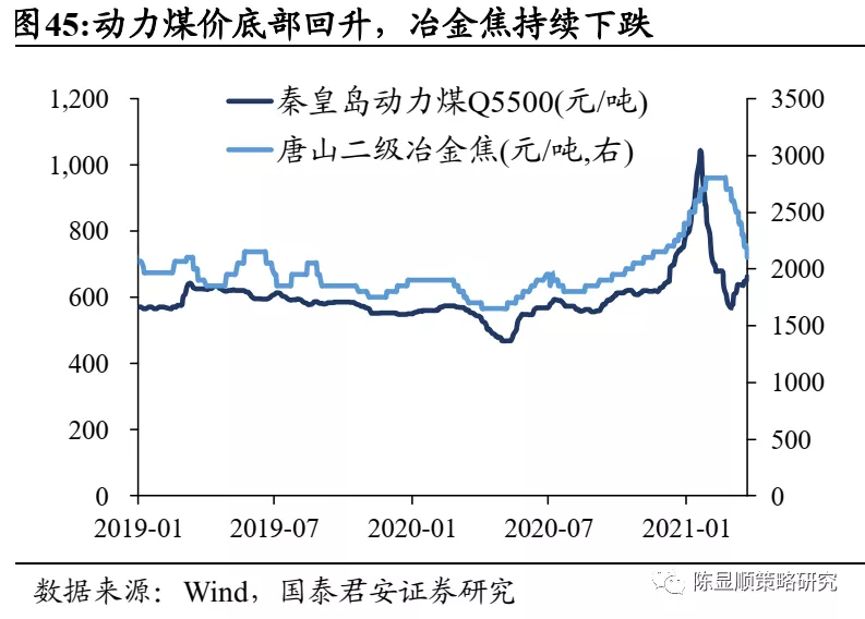 煤炭:工业需求回暖下动力煤价格触底反弹去库,焦炭面临降价压力。动力煤方面,工业用电和工业燃煤恢复,市场需求回暖,截至3月23日,秦皇岛动力煤Q5500价格回升,环比两周前价格上涨6.43%,为662.5元/吨。环渤海六港口煤炭库存去化,相比两周前减少2.69%至1687.3万吨。焦炭价格继续下行,唐山二级冶金焦环比半月前下降16.0%。焦炭段短期面临需求下降压力,唐山环保执法持续发酵,钢厂产能恢复力度低于预期,钢厂焦炭库存持续回升,价格短期存在压力。