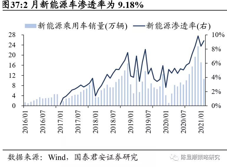 新能源车:2月新能源车渗透率为9.18%,充电桩保有量增57.6%。2月新能源车销售10.6万辆,环比下降38.25%,同比增823.91%,较2019年2月增115.63%,新车销售中新能源渗透率9.18%。2月充电桩保有量为83.73万个,同比增57.6%。乘联会预计到2025年中国自主品牌在新能源车市场将达到20%左右的份额,实现对合资品牌的换道超车。
