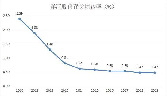 2015年后,以高端白酒涨价带动的新一轮黄金周期启动,洋河股份这种深度分销带来的弊端逐步显现。这一点,从存货周转上体现得特别明显。