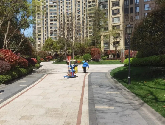 这是我用手机随便拍拍的,水清澈见底,在阳光下,更是湛蓝湛蓝的。要说这是刚交付的小区,是不是你也会信 接下来,我又在小区里转了几圈,整体的感觉是:不仅干净,绿化保养得也很好 一名工人会推着垃圾车在小区里巡查,见到纸屑等杂物,会及时清理。