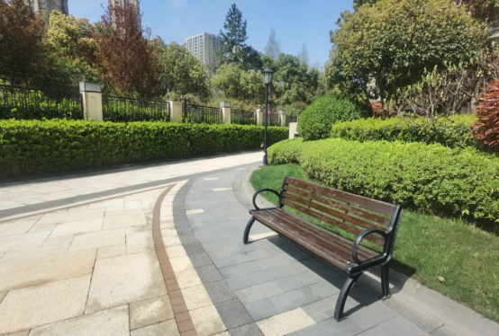 主干道都挺干净的,是不是人多的地方才这么细心呵护?于是,我又跑去小区边缘的小路上看了看,依然很干净 一张休息椅虽然平时不大有人来坐,我特意用手擦了擦,发现也并没有浮灰。