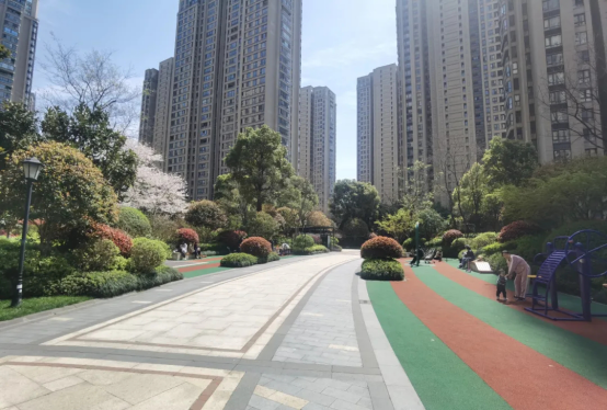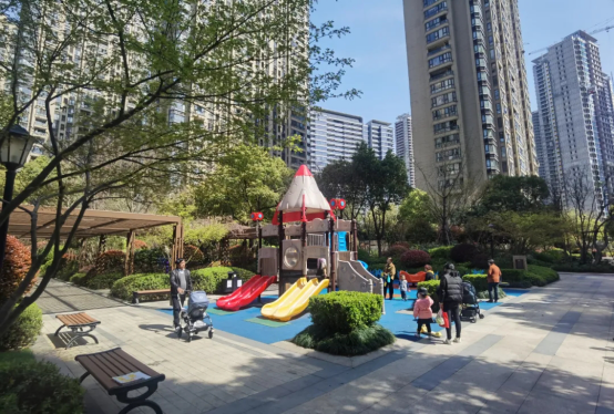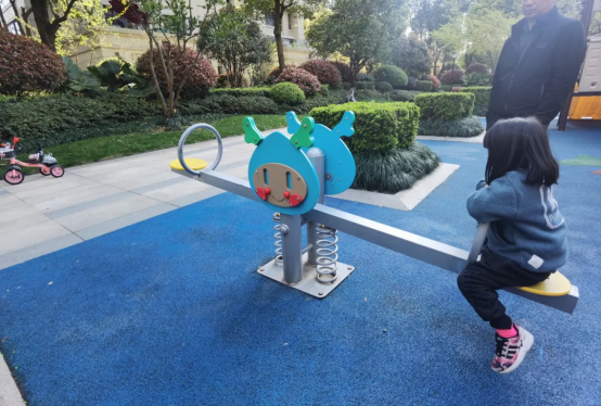 我查了下,除了物业日常的护理,这背后还有龙湖“善居计划”的功劳 “善居计划”包括两方面: 一方面,是优化园区的空间环境,打造更具亲和力的户外交互体验,称之为“冻龄”改造 以春江彼岸为例,近两年,在龙湖智慧服务的参与下,小区设施进行了不少更新 比如针对小区里孩子比较多的特点,游乐设施进行了优化,增加了“龙小湖”元素的设施 交付时间久了,游乐区的塑胶场地,难免会破损,去年也换上了新的。