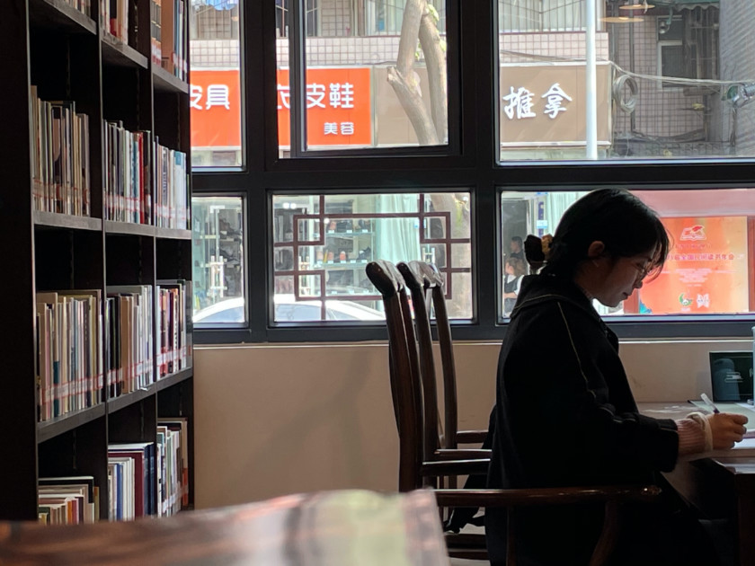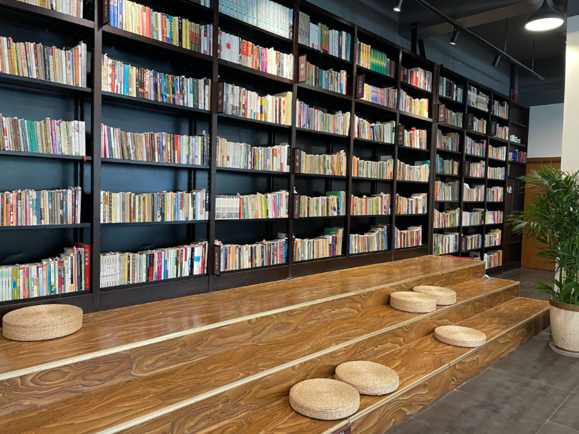 三层为“毛边书局”,馆内陈列的都是旧书及旧物,主要功能是研究地方文化,还可举办哲学、医学、自然科学等各类学术读书会。在书院里,随处可见看书以及借书还书的居民,人们或站或坐,都沉浸在浓浓的读书氛围之中。