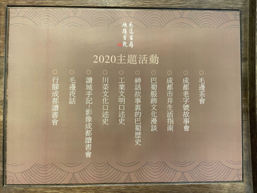 书院不仅有多项文化服务项目,如书香桃蹊·阅享人生、红色粮仓“不忘初心·牢记使命”、四季微学堂、“莲心”文德等,还会邀请川菜老字号名店的老师傅,走进书院讲述川菜演变史,通过主题展览、书籍售卖,更立体地呈现传播川菜文化。