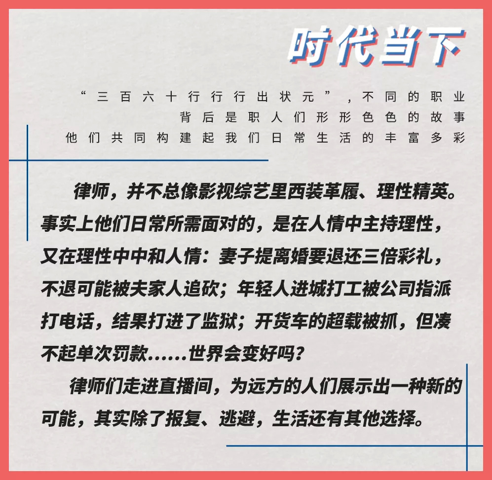 而直播和短视频的形式,更是让律师们不再受限于地理位置,他们简便、高效地为更多天南地北的人提供法律咨询和普法解读。