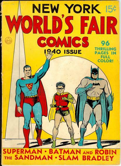 对于DC来说,当时还没有看到超人和蝙蝠侠携手战斗的必要,反正把他俩印在封面上就能卖钱。1940年,超人和蝙蝠侠出现在了纽约世博会漫画的封面上,但内文是他们各自独立的故事。