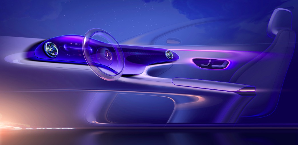 “我们的设计师最初提出了各种各样的方案,直到我们看到这样一张草图,才发现原来这张草图才是我们想要去探索的。”梅赛德斯-奔驰负责内饰设计的Peter Balko谈到的草图就是指MBUX Hyperscreen。