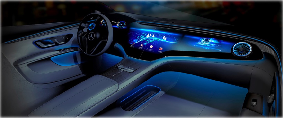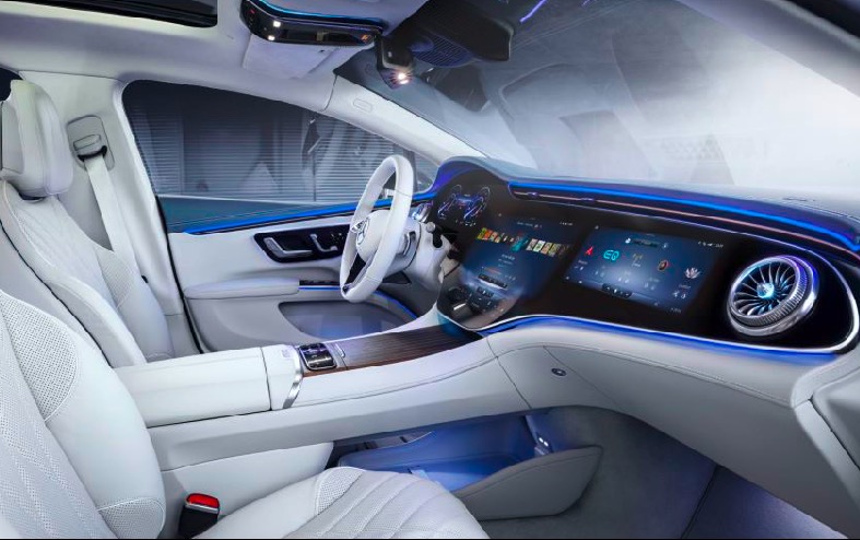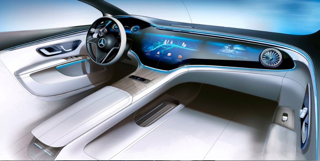 EQS内饰部分的那块面积超过1平方米的MBUX Hyperscreen超大屏是整台车的点晴之笔。